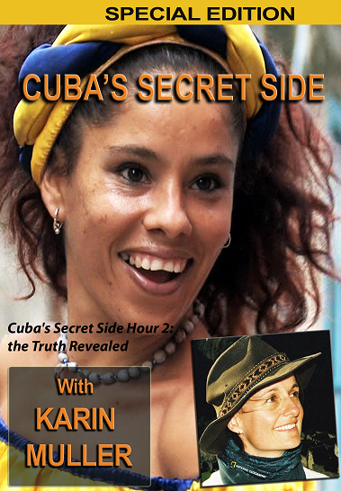 CUBA’S SECRET SIDE is a journey into the soul of Cuba. For three months, adventure filmmaker and author Karin Muller hitchhiked around Cuba – living with fisherman and farmers, Santeria priestess and country doctors. She filmed undercover on a tourist visa and Swiss passport and was arrested over a dozen times. In the end she managed to get beyond the propaganda and rhetoric to capture the true character of the Cuban people. CUBA’S SECRET SIDE is an entertaining, insightful, and often humorous look at a side of Cuba that few foreigners get to see.